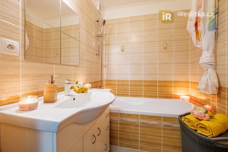V koupelně pak nalezneme pohodlnou vanu a toaleta je prakticky situována do samostatné místnosti. Výhodou je i prostorná a chytře umístěná chodba, ze které je vstup do všech místností bytu.