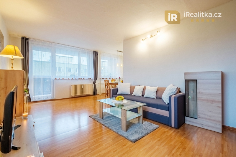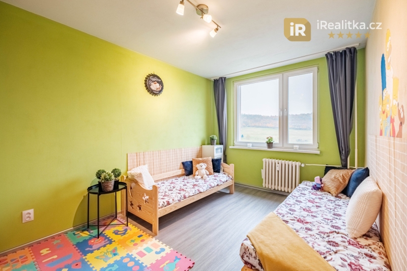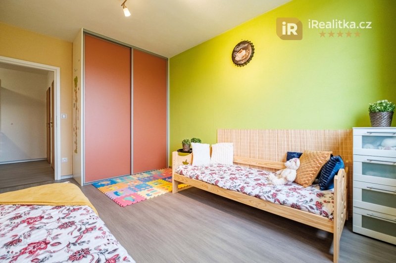 Dominantou bytu je pak velký obývací pokoj s kuchyní a již zmíněnou lodžií. Další dvě místnosti bytu tvoří ložnice a dětský pokoj.