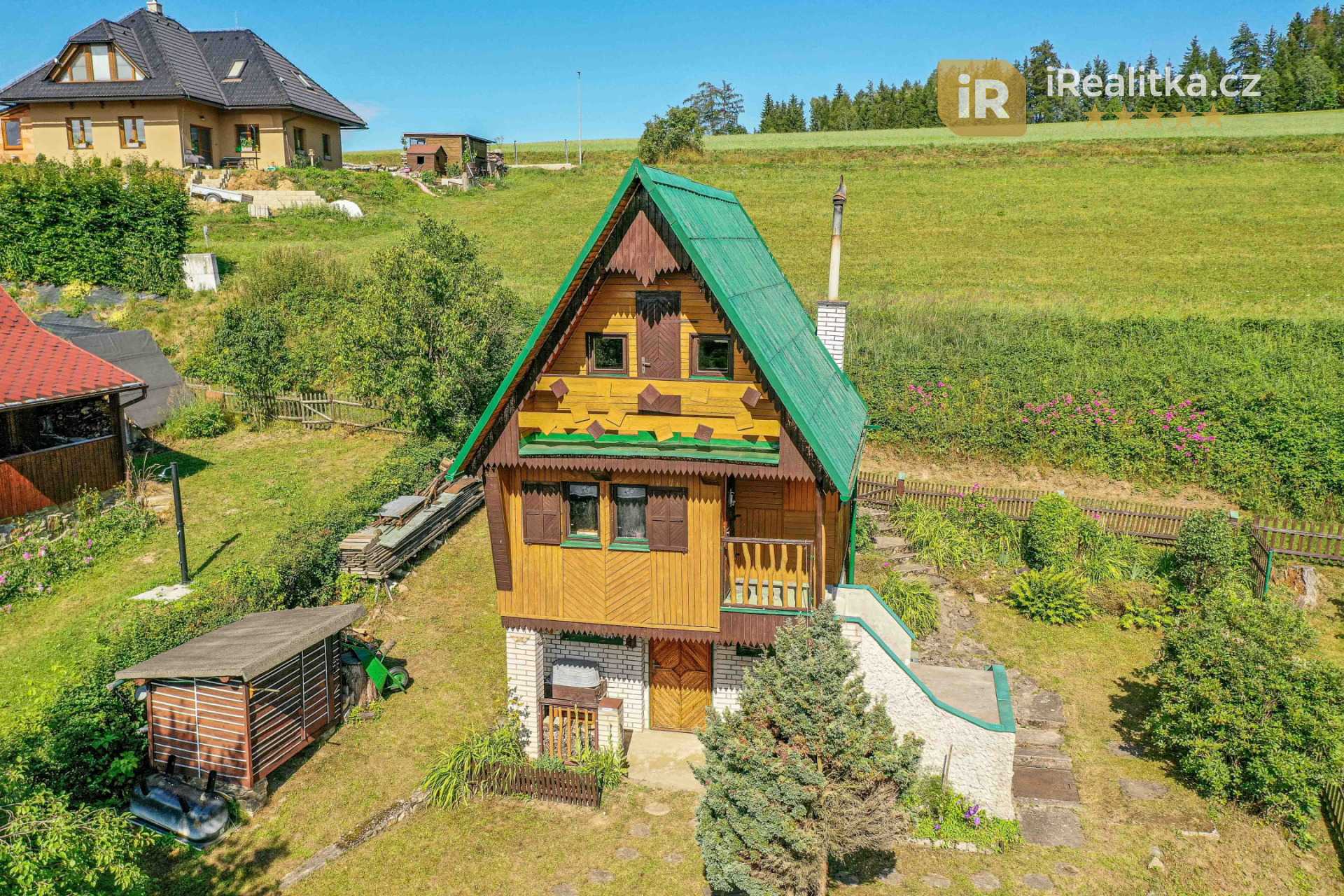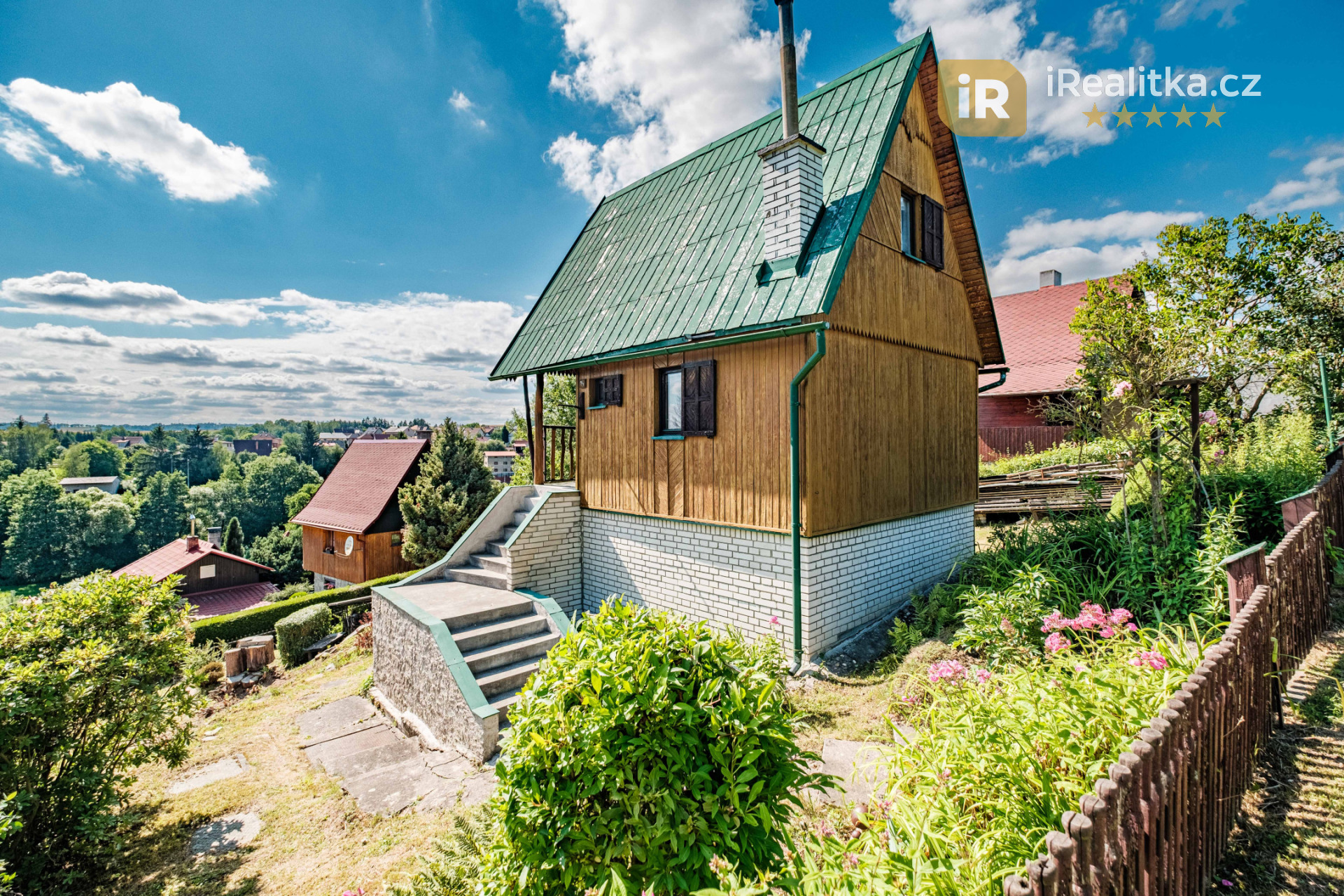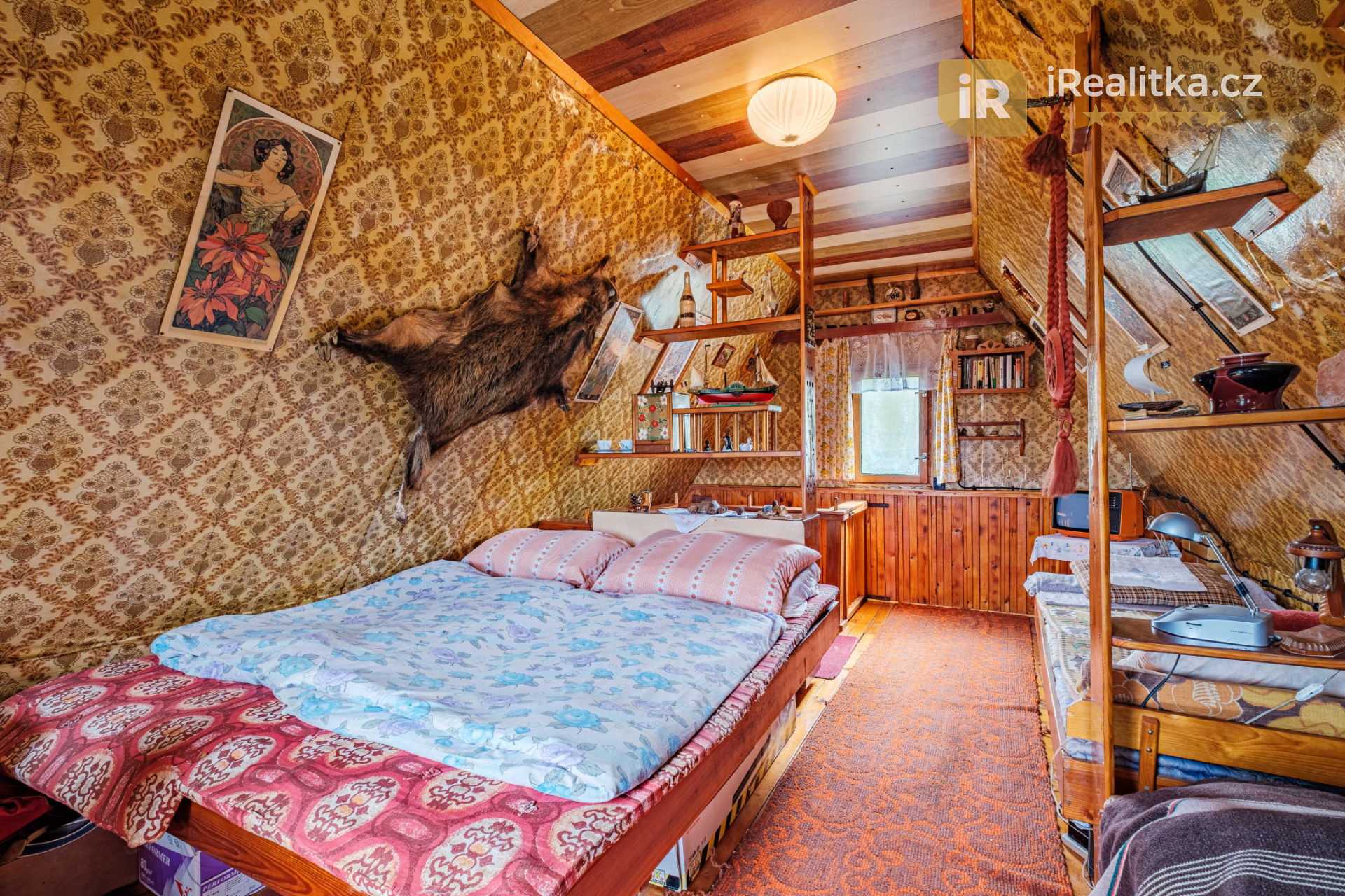 Nemovitost se nachází na svažitém pozemku o celkové výměře 387 m² (z toho zastavěná plocha chaty činí 32 m²) a kromě chaty na něm nalezneme také zahradní domek, posezení s ohništěm, okrasnou zahrádku, stromy a keře.