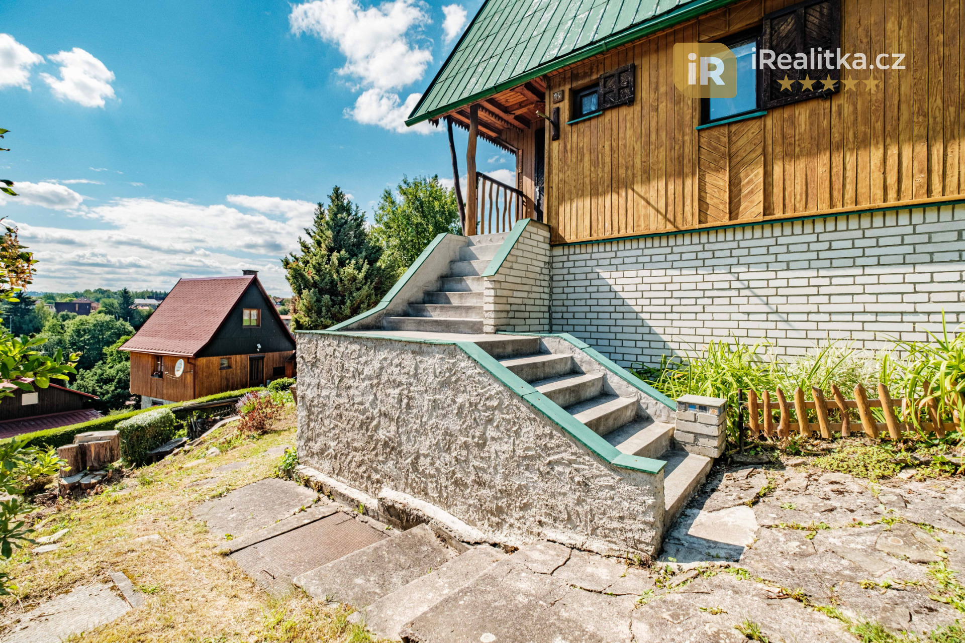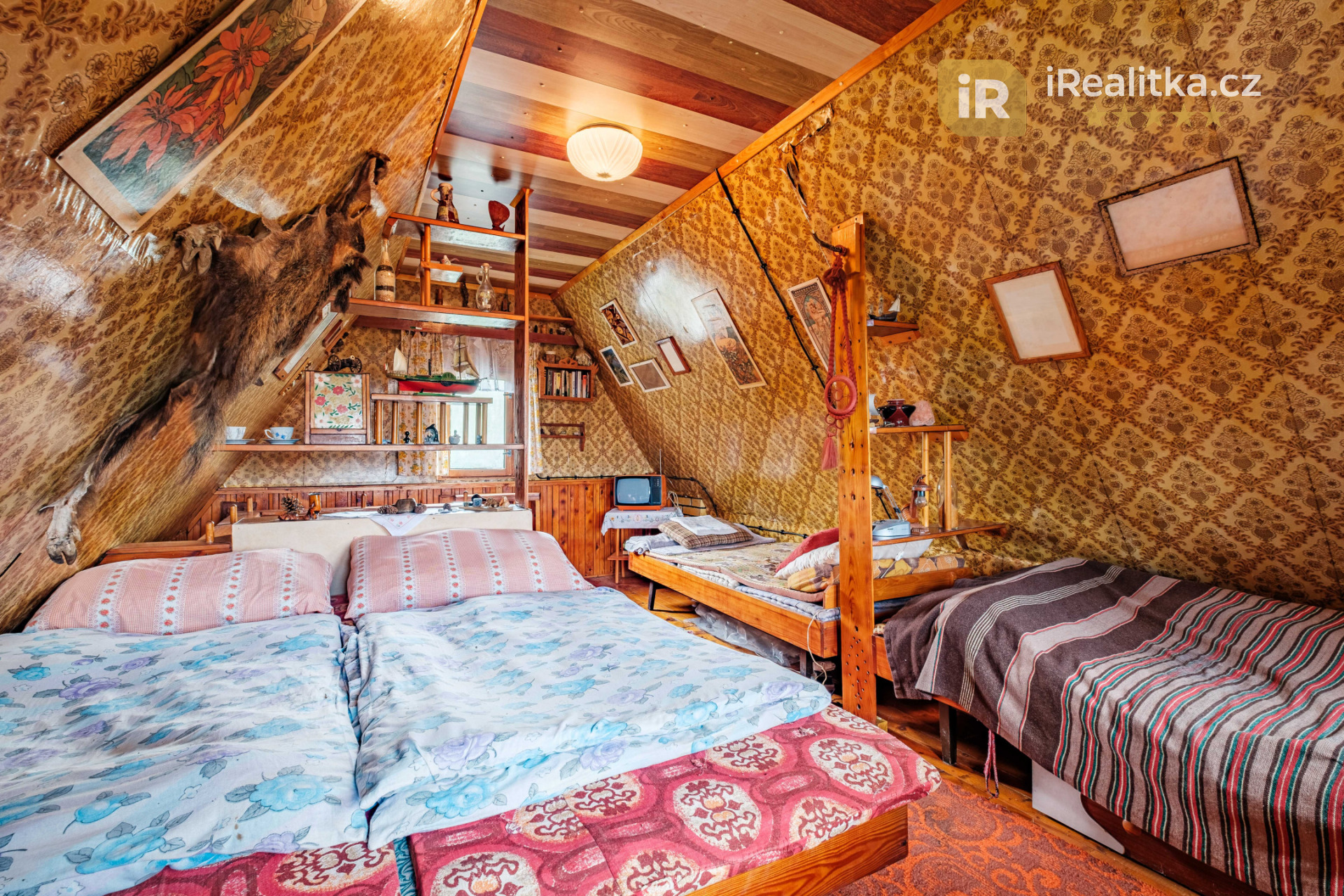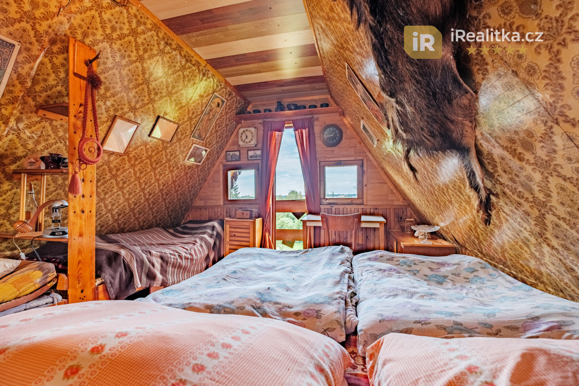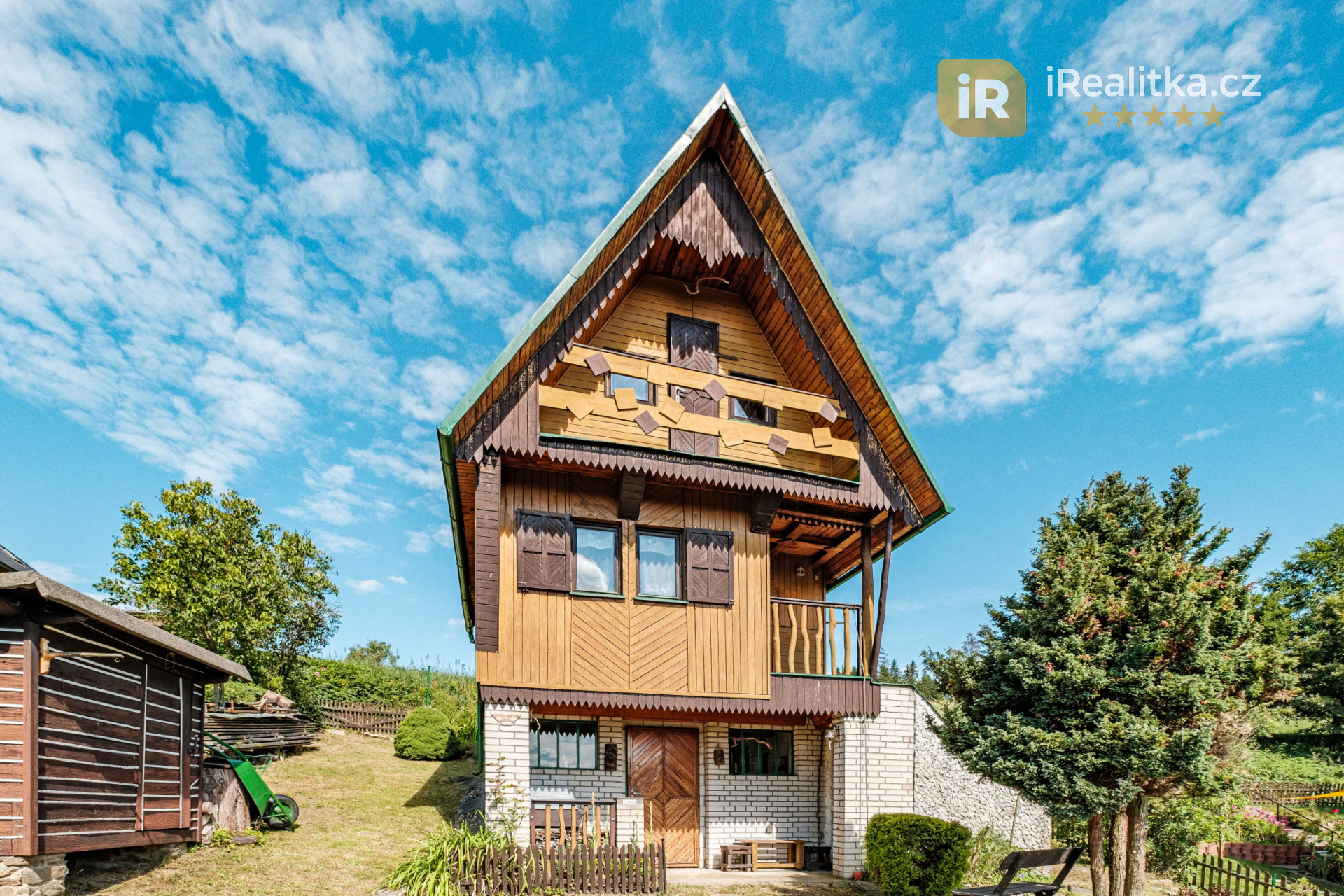 Nemovitost se nachází na svažitém pozemku o celkové výměře 387 m² (z toho zastavěná plocha chaty činí 32 m²) a kromě chaty na něm nalezneme také zahradní domek, posezení s ohništěm, okrasnou zahrádku, stromy a keře.