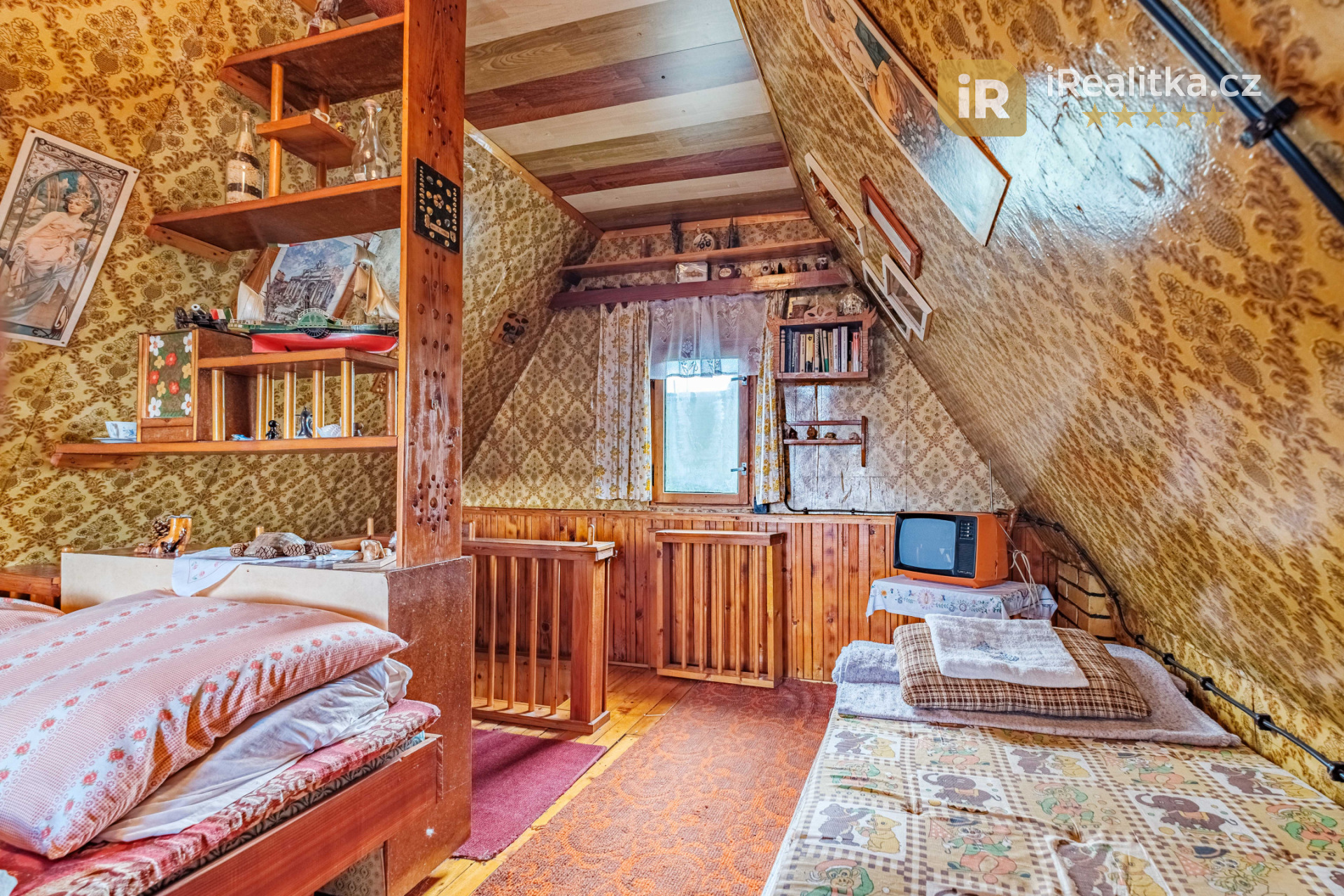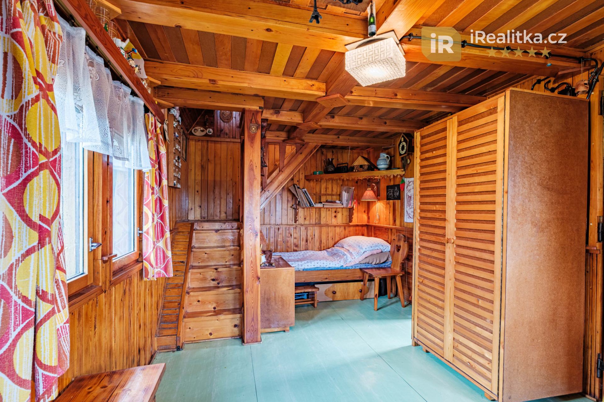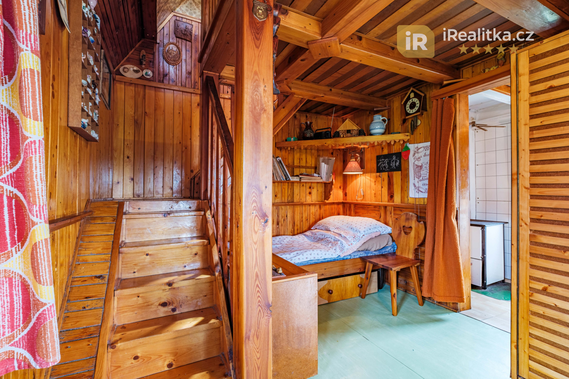 V přízemí chaty, kam se ze zahrady dostaneme po betonovém schodišti, se nachází hlavní společenská místnost, kuchyňský kout a toaleta. Celková výměra těchto prostor činí 18 m². Po dřevěném schodišti vystoupáme do podkroví, kde se nachází ložnice a lodžie s krásným výhledem. Tyto prostory mají velikost 19 m². Celková užitná plocha chaty tedy činí 37 m².