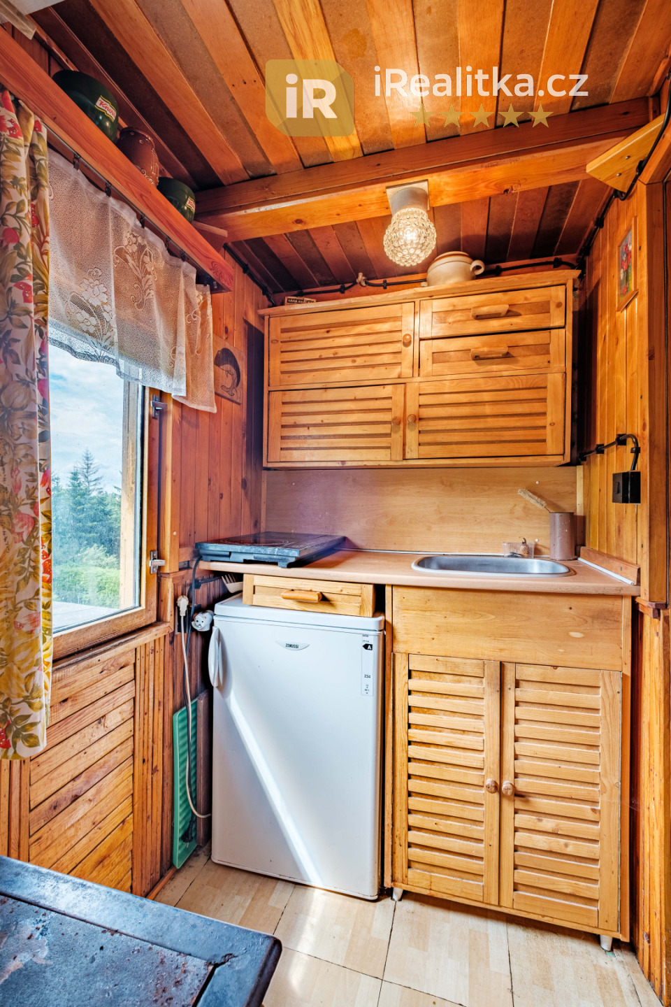 Do chaty je zavedena elektřina a voda z veřejného vodovodu. Odpady jsou zde řešeny tříkomorovým septikem. Přitopit si pak můžete v kamnech, umístěných v kuchyňském koutu.