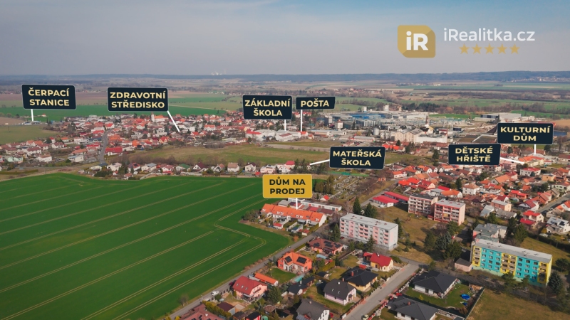 Nemovitost se nachází v klidné lokalitě, stranou od rušných hlavních komunikací, navíc ve slepé ulici, takže si zde budete užívat dokonale klidné bydlení. Zároveň však budete mít v docházkové vzdálenosti vše, co budete potřebovat – základní i mateřskou školu, dětské hřiště, obchody, poštu, obecní úřad, autobusovou zastávku, lékárnu, zdravotní středisko, čerpací stanici i různá sportoviště.
