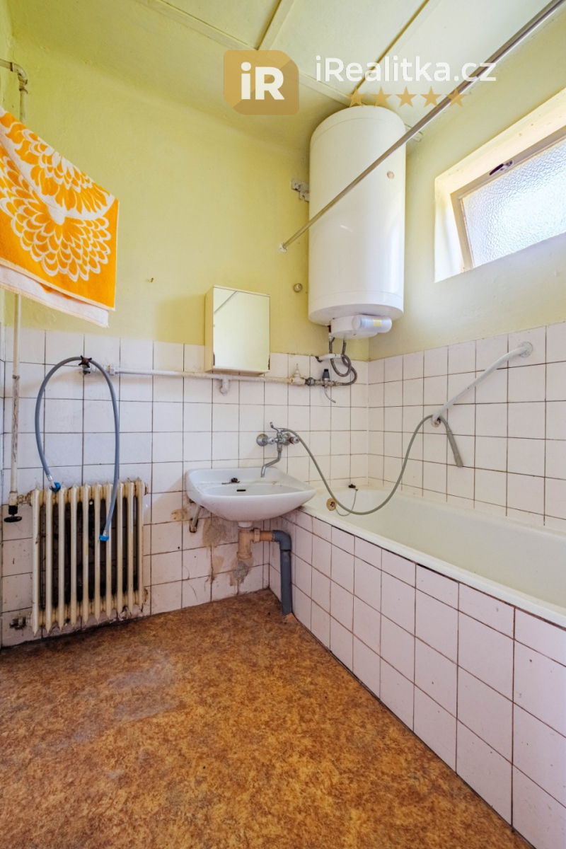 Vytápění je zajištěno již starším kotlem na tuhá paliva prostřednictvím ústředního topení a ohřev vody pak elektrickým bojlerem.