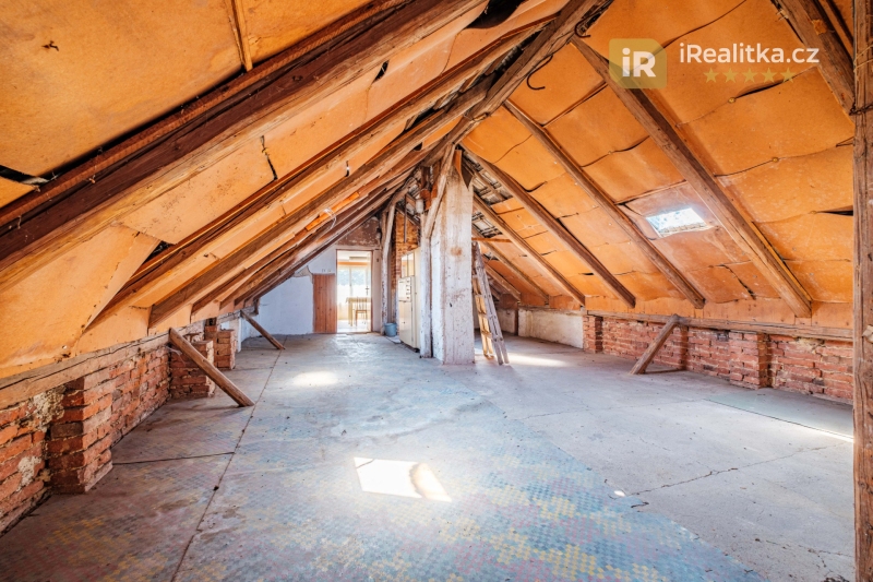 V podkroví, kam se dostaneme po dřevěném schodišti, se nachází ještě jeden pokoj a kuchyň (s celkovou plochou 40 m²) a dále ještě nedokončený podkrovní prostor o velikosti 56 m² vhodný pro vybudování další velké místnosti.