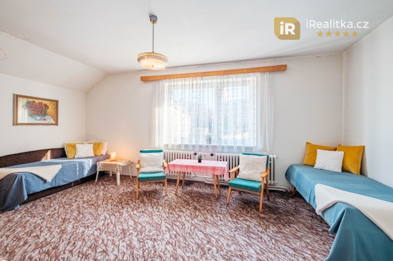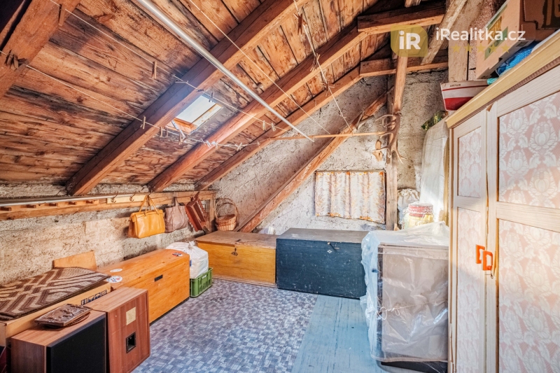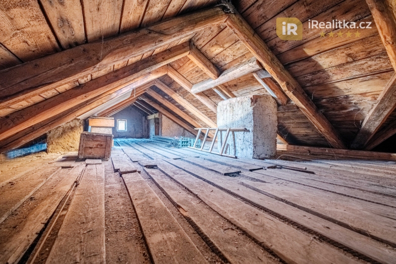 Ve 2. NP jsou pak situovány další 3 pokoje a prostorná chodba. Celková velikost těchto prostor činí 59 m². Dále zde nalezneme prakticky členěné půdní prostory o celkové ploše 38 m² vhodné k uskladnění věcí. Z nich se pak po dřevěném schodišti dostaneme na půdu nabízející dalších 56 m² půdorysné plochy.
