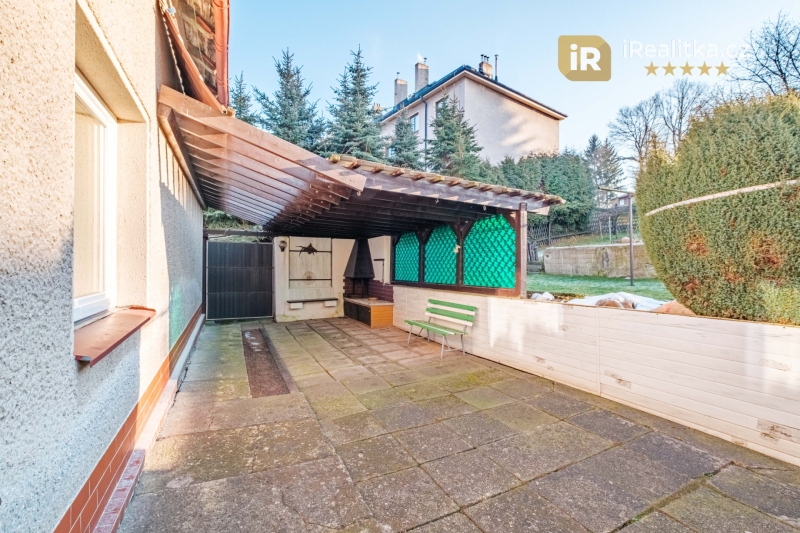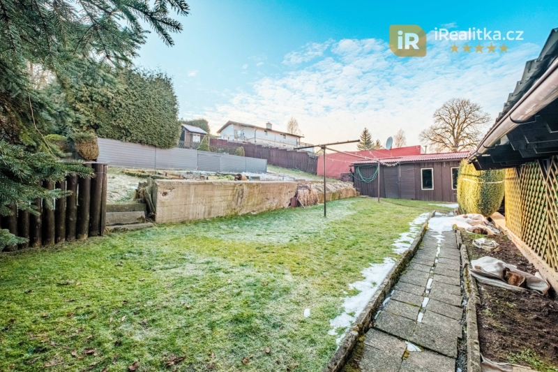 Za domem se dále nachází prostorná pergola (25 m²) vhodná pro posezení rodinou a přáteli, bazén (6 x 3.5 m) pro příjemné letní osvěžení, kůlna (19 m²) ideální pro nadšené kutily, přístavek (41 m²) sloužící jako skladovací prostory, praktický zahradní domek (18 m²) a především pak obrovská svažitá zahrada s překrásným výhledem do okolní krajiny.