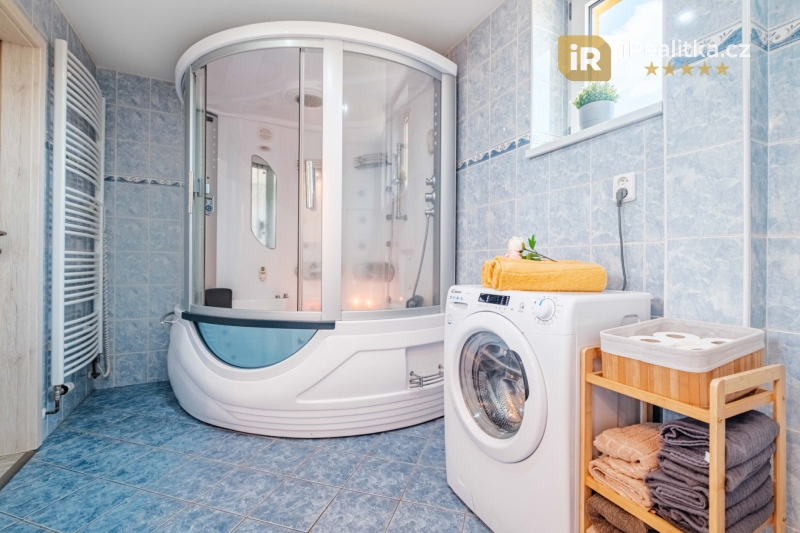 Suterén domu (70 m²) pak nabídne další plnohodnotné podlaží, kde nalezneme velkou garáž s dílnou, sklad, kotelnu, umývárnu a spíž.
