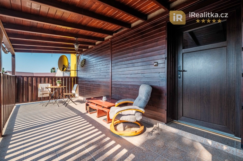 Ze zádveří se po schodišti dostaneme do 2 . NP, které má tak prakticky vlastní vchod. Zde se nachází slunný obývací pokoj, kuchyň, dětský pokoj s vestavěnou skříní, koupelna s vanou, samostatná toaleta, spíž, chodba a také krytá terasa (20 m²). Dispozice 2. NP: 2+1 (76 m² včetně terasy).